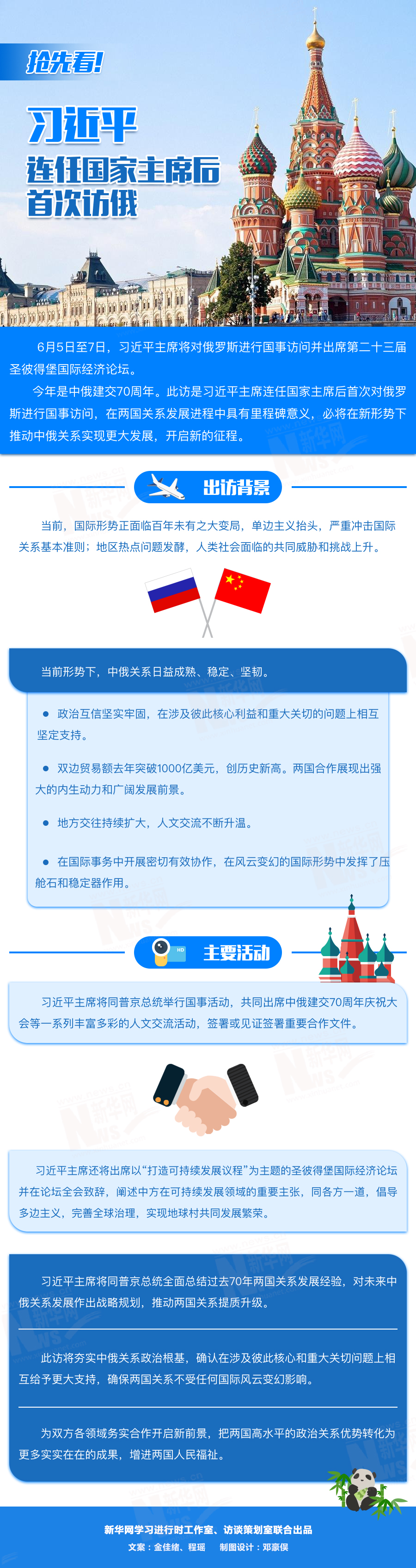 訪(fǎng)問(wèn)期間,習(xí)近平主席還將出席圣彼得堡國(guó)際經(jīng)濟(jì)論壇,在論壇全會(huì)致辭,闡述中方在可持續(xù)發(fā)展領(lǐng)域的重要主張,同各方一道,倡導(dǎo)多邊主義,完善全球治理,實(shí)現(xiàn)地球村共同發(fā)展繁榮。