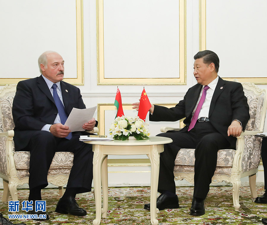 6月14日,國家主席習近平在比什凱克會見白俄羅斯總統盧卡申科。 新華社記者 丁林 攝