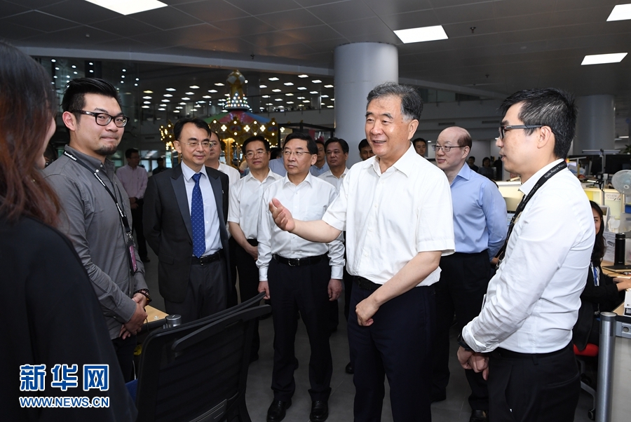 6月14日至16日,中共中央政治局常委、全國政協(xié)主席汪洋在出席第十一屆海峽論壇期間,深入閩江學院、網(wǎng)龍臺灣青年就業(yè)創(chuàng)業(yè)基地、廈門(集美)閩臺研學旅行基地、玉晶光電(廈門)有限公司調(diào)研,并與在大陸工作學習的臺灣青年代表座談。這是6月14日汪洋在福州網(wǎng)龍臺灣青年就業(yè)創(chuàng)業(yè)基地調(diào)研。 新華社記者 饒愛民 攝