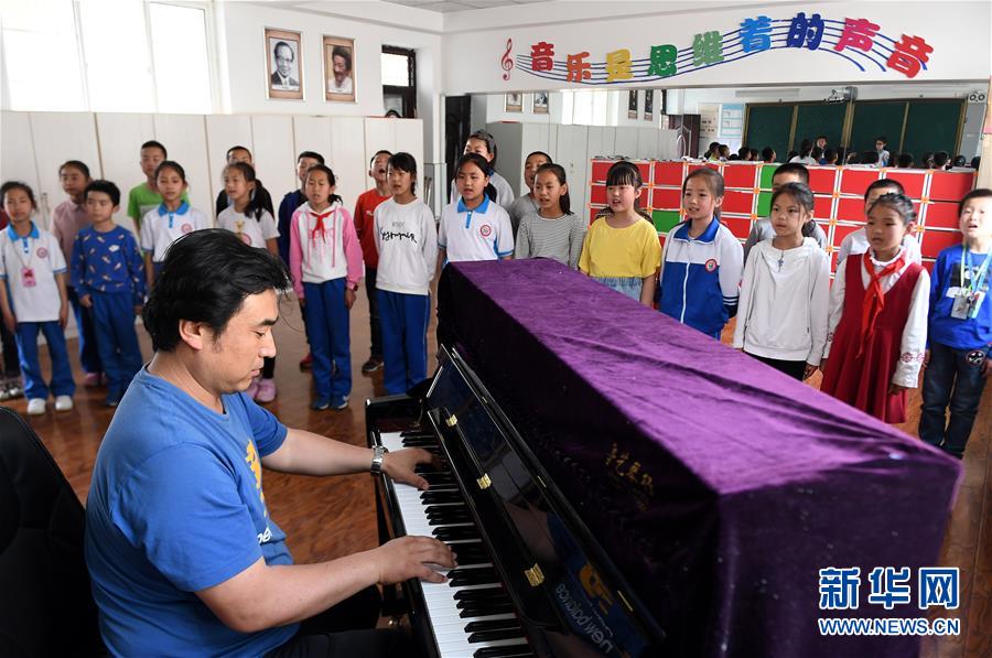 陜西省延安市楊家?guī)X福州希望小學(xué)合唱社團(tuán)的學(xué)生在進(jìn)行合唱(4月24日攝)。新華社記者 劉瀟 攝