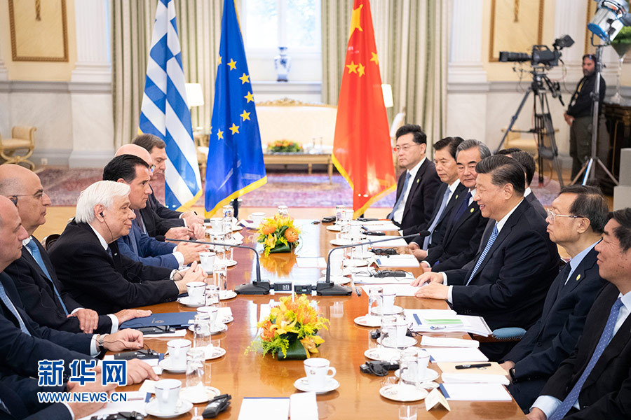 當(dāng)?shù)貢r(shí)間11月11日,國家主席習(xí)近平在雅典同希臘總統(tǒng)帕夫洛普洛斯會(huì)談。 新華社記者 姚大偉 攝