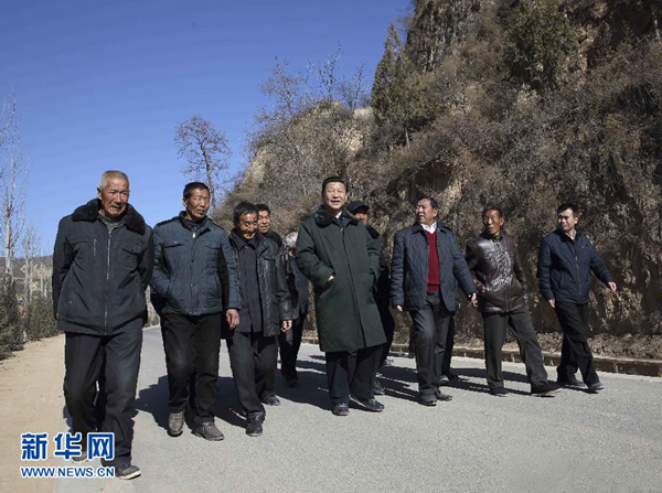 2015年2月中旬,習(xí)近平到陜西看望慰問(wèn)群眾,特意找來(lái)當(dāng)年陜甘寧革命老區(qū)所屬范圍的市縣領(lǐng)導(dǎo)人,一起開(kāi)了陜甘寧革命老區(qū)脫貧致富座談會(huì),了解情況,明確思路,推進(jìn)工作。