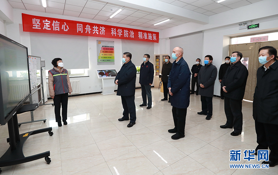 2月10日,中共中央總書(shū)記、國(guó)家主席、中央軍委主席習(xí)近平在北京調(diào)研指導(dǎo)新冠肺炎疫情防控工作。這是習(xí)近平在朝陽(yáng)區(qū)安貞街道安華里社區(qū),了解基層一線(xiàn)疫情聯(lián)防聯(lián)控情況。 新華社記者 鞠鵬 攝