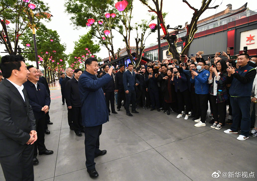 習近平總書記22日在西安考察調研。他先后來到陜西汽車控股集團有限公司、西安交通大學、大唐不夜城步行街,了解企業復工復產和社會生活秩序恢復等情況。(文字記者:張曉松 攝影記者:鞠鵬、謝環馳、燕雁、翟健嵐) ????