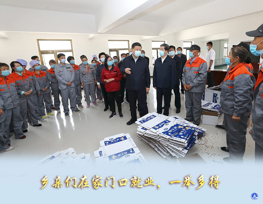 在村里,習(xí)近平總書記特地考察了扶貧車間:“不是搬過來蓋幾間漂亮房子就行了。鄉(xiāng)親們搬出來后,要穩(wěn)得住、能致富,才能扎下根。”