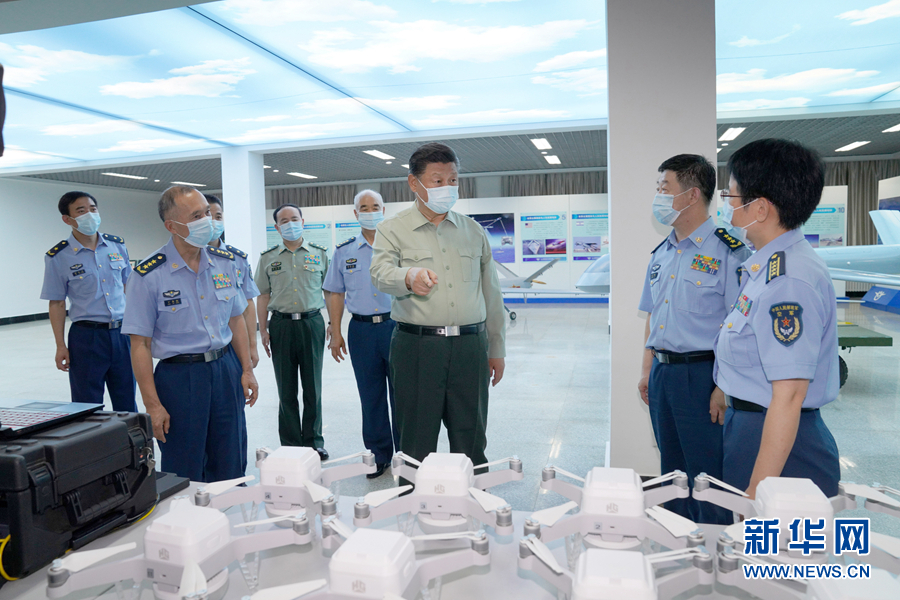 隨后,習近平來到無人機實驗室,察看無人機操控教學設施,了解無人機操控員培養情況。習近平說,現在各類無人機系統大量出現,無人作戰正在深刻改變戰爭面貌。要加強無人作戰研究,加強無人機專業建設,加強實戰化教育訓練,加快培養無人機運用和指揮人才。