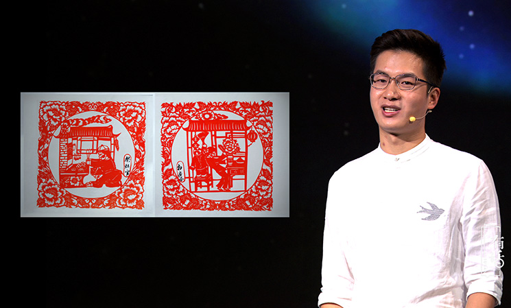 作為一個90后的剪紙傳承人,就要剪一些有新時代特點的剪紙作品。我擅長的是即興創(chuàng)作、脫稿剪紙,速度就是快。我們會了那些傳統(tǒng)的圖案之外,還要能夠看到任何的物體,或者別人給我一個命題就能即時創(chuàng)作。搞剪紙創(chuàng)作一定要豐富自己的知識面,這樣腦海中才會有更多的畫面跟場景。我感覺剪紙是讓我用紙和剪刀在對話,把我的情感通過紙釋放出來。其實是一種靜修,或者自我的享受。我以后要開展的工作,或許是要承擔著怎樣讓剪紙在00后、10后、20后這些年輕一代的未來人,怎么能認識我們這種傳統(tǒng)藝術(shù),這是我一生要去做的事情。