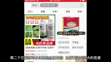 不少電商平臺(tái)賣(mài)家在銷(xiāo)售“甲氰菊酯”“溴氰菊酯”等產(chǎn)品時(shí),專(zhuān)門(mén)標(biāo)注了“水產(chǎn)養(yǎng)殖戶清塘專(zhuān)用”“迷蝦”“捕蝦”等字樣。但賣(mài)家同時(shí)又提示:產(chǎn)品對(duì)魚(yú)蝦有毒,請(qǐng)遠(yuǎn)離池塘河流,謹(jǐn)慎使用。