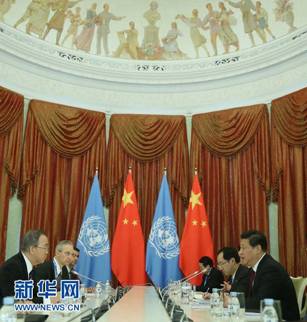 潘基文表示,聯(lián)合國高度贊賞中國在應(yīng)對各種全球性挑戰(zhàn)方面發(fā)揮的領(lǐng)導(dǎo)作用。在安理會5個常任理事國中,中國是派出維和人員最多的國家。中方派軍艦參加敘利亞化學(xué)武器海運(yùn)聯(lián)合護(hù)航行動,積極參與推動政治解決敘利亞、南蘇丹等地區(qū)熱點(diǎn)問題,充分證明中國在維護(hù)世界和平安全方面作出的重要貢獻(xiàn)。