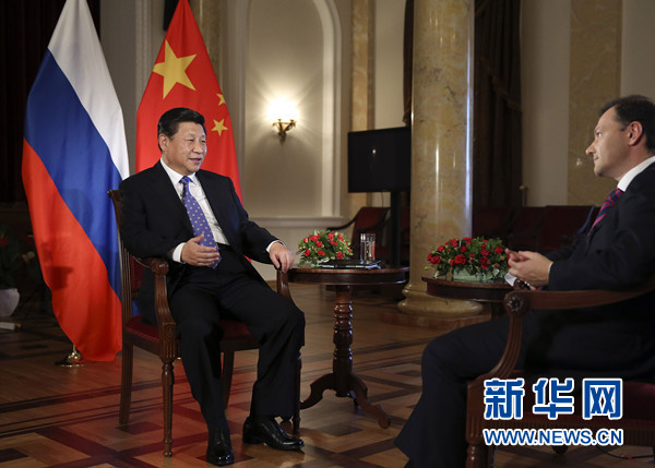 ????習近平:去年3月,我在當選中國國家主席幾天后,就應普京總統邀請來到貴國進行國事訪問,貴國是我當選中國國家主席后第一個訪問的國家。那次,我同普京總統進行了長時間的議題廣泛、坦誠深入的交流,就加強中俄全方位戰略協作達成重要共識,作出全面規劃。此后我們又4次會晤和見面。昨天,我同普京總統會晤時共同作了回顧。我們共同推動兩國在涉及彼此核心利益的重大問題上相互堅定支持,把兩國關系的政治優勢轉化為合作優勢,雙方經貿、能源、高技術、地方、人文、國際事務等各領域合作取得豐碩成果,促進了兩國共同發展繁榮,維護了國際公平正義和世界和平穩定。我對中俄關系發展取得的成果十分滿意。當前中俄關系發展是基礎最牢、互信最高、地區和國際影響最大的一個時期。