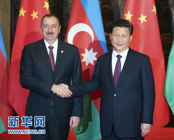 ????習近平表示,中阿兩國友好合作關系在平等互利、相互尊重的基礎上不斷發(fā)展。兩國政治關系牢固,互信水平高,務實成果豐碩。中方贊賞阿方在涉及中國核心利益的問題上始終給予的堅定支持,支持阿塞拜疆人民根據(jù)本國國情選擇的發(fā)展道路,支持阿方維護國家主權、獨立,促進經(jīng)濟發(fā)展的努力。中方愿同阿方一道,密切兩國政府、立法機構(gòu)、政黨、各部門交往,增進政治互信。中方鼓勵本國企業(yè)同阿方在工程承包、基礎設施建設、交通、電信、新能源等領域開展合作,鼓勵兩國人文交流,愿同阿方加強在國際和地區(qū)事務中的溝通和協(xié)調(diào)。