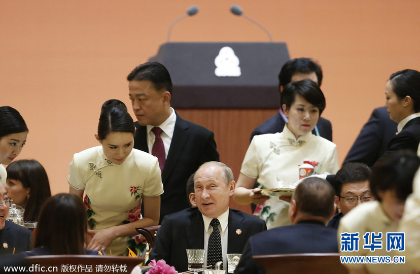 上海亞信峰會:普京出席歡迎晚宴 被旗袍東方美女禮儀吸引