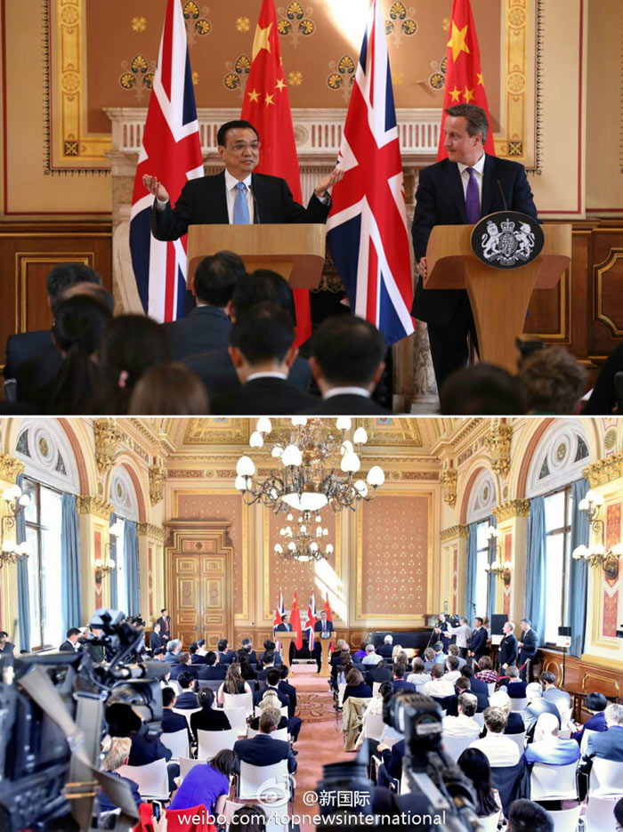???? 新華網(wǎng)北京6月18日電 據(jù)新華社“新國(guó)際”微博報(bào)道,17日李克強(qiáng)與卡梅倫共見(jiàn)記者時(shí)說(shuō),今天陽(yáng)光明媚是個(gè)好日子,英國(guó)有句諺語(yǔ):把握一個(gè)今天,勝似兩個(gè)明天。中國(guó)也常說(shuō)“時(shí)不我待”。中英合作基礎(chǔ)好、潛力大,雙方有責(zé)任搶抓機(jī)遇,規(guī)劃新路線(xiàn),鋪設(shè)快車(chē)道,使兩國(guó)關(guān)系明天更加燦爛。