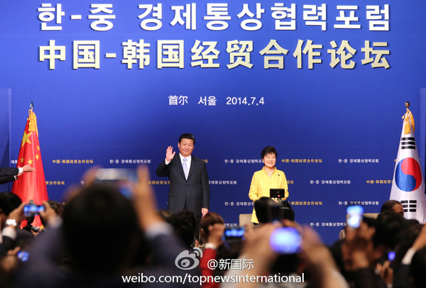 新華網(wǎng)北京7月4日電 據(jù)新華社“新國際”微博報道,習近平表示,中韓應共同反對保護主義,兩國企業(yè)可以在制定國際標準、開拓國際市場、參與區(qū)域一體化進程等方面加強探討、拓展合作。中方歡迎韓國參與亞洲基礎設施投資銀行籌建,共同推動地區(qū)互聯(lián)互通和基礎設施建設。