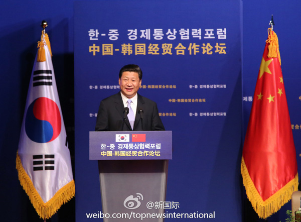 ????新華網(wǎng)北京7月4日電 據(jù)新華社“新國際”微博報道,習近平指出,中國對韓投資尚處于起步,“小荷才露尖尖角”,但只要精耕細作,一定會蓮香十里飄。中國人民銀行和韓國銀行簽訂了在首爾建立人民幣清算安排的備忘錄,確定中國交通銀行擔任首爾人民幣清算銀行,這將有利于促進中韓兩國貿易、投資自由化便利化。