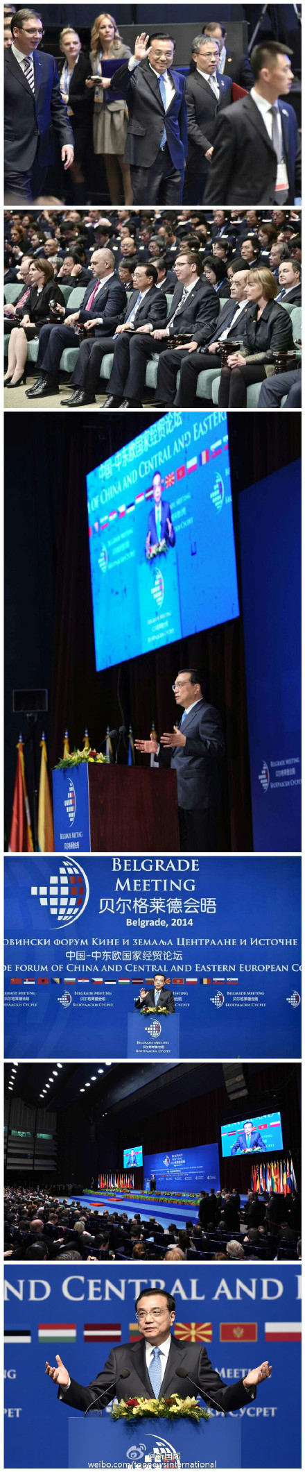??? 新華網(wǎng)北京12月17日電 據(jù)新華社“新國際”微博報道,當?shù)貢r間16日下午,李克強在貝爾格萊德出席了中國-中東歐國家第四屆經(jīng)貿(mào)論壇開幕式并致辭。總理表示,加強同中東歐國家合作,有利于推進歐洲一體化進程,實現(xiàn)中國和中東歐國家的互補。來自中國和中東歐16個國家的千余名企業(yè)代表參加了論壇。