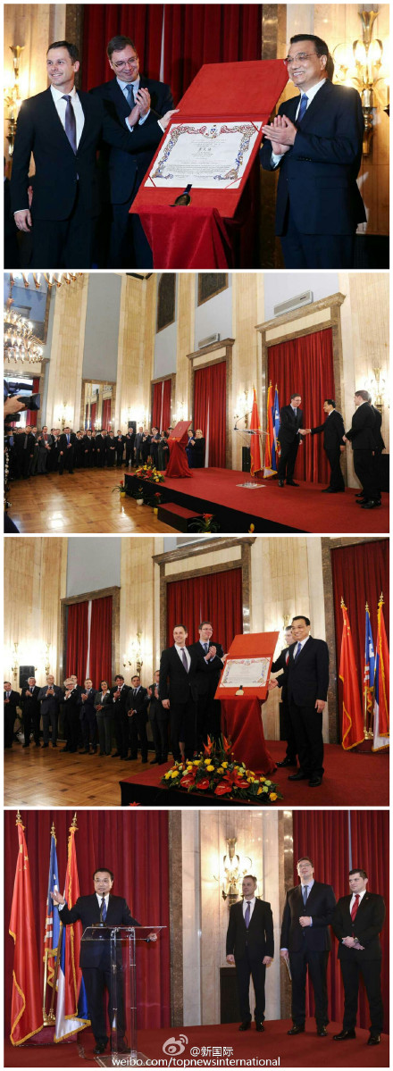 李克強(qiáng)被授予“貝爾格萊德榮譽(yù)市民”