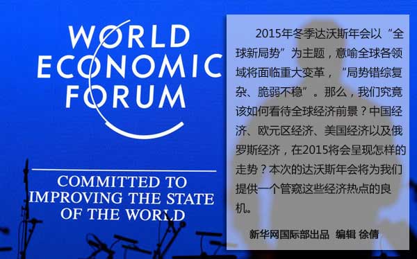 ????究竟該如何看待2015年的全球經(jīng)濟前景?全球經(jīng)濟到底面臨怎樣的風險和機遇?將于21日拉開帷幕的世界經(jīng)濟論壇達沃斯年會,為人們管窺全球經(jīng)濟脈動提供了良機。從論壇主題以及已經(jīng)聚合的意見看,放寬觀察視野、勿忘積極因素、期待中國紅利,或許是本次達沃斯年會給人們帶來的啟示。