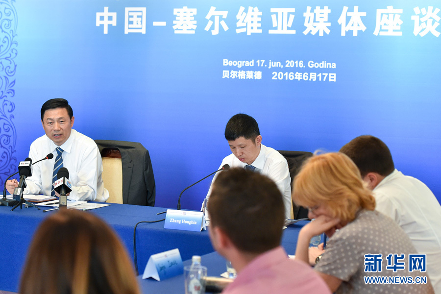 6月17日,在塞爾維亞首都貝爾格萊德召開的中國—塞爾維亞媒體座談會上,中國國務(wù)院新聞辦公室副主任郭衛(wèi)民(后左一)同與會的中塞媒體代表進(jìn)行交流。當(dāng)天,由中國國務(wù)院新聞辦公室主辦的中國—塞爾維亞媒體座談會在塞爾維亞首都貝爾格萊德舉行,中國國務(wù)院新聞辦副主任郭衛(wèi)民和來自中塞主流媒體的十多位高層人士出席。 新華網(wǎng)記者 錢一 攝