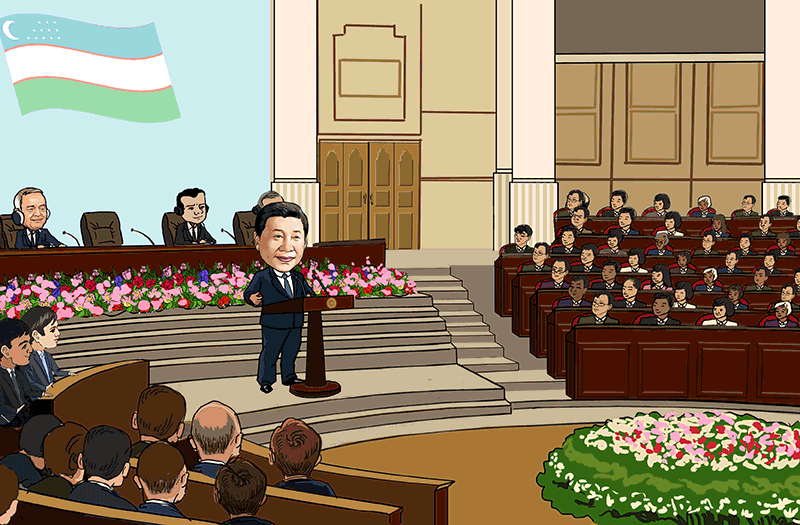 6月22日,正在烏茲別克斯坦訪問(wèn)的國(guó)家主席習(xí)近平在塔什干烏茲別克斯坦最高會(huì)議立法院發(fā)表題為《攜手共創(chuàng)絲綢之路新輝煌》的重要演講,提出構(gòu)建互利合作網(wǎng)絡(luò)、共創(chuàng)新型合作模式、打造多元合作平臺(tái)、推進(jìn)重點(diǎn)領(lǐng)域項(xiàng)目的新主張,為推動(dòng)“一帶一路”向更高水平、更廣空間邁進(jìn)指明了方向。當(dāng)天,習(xí)主席和卡里莫夫總統(tǒng)在塔什干共同出席“安格連-帕普”鐵路隧道的通車(chē)視頻連線(xiàn)活動(dòng)。
