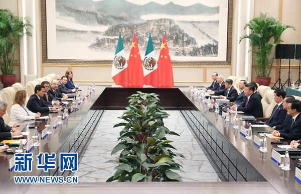 習近平指出,發展中墨全面戰略伙伴關系是一項開拓性事業。當前,雙方正積極落實我和總統先生達成的共識,雙邊貿易、投資、金融、能源等領域合作取得不少具體成果。中方愿同墨方一道,鞏固政治互信,深化利益交融,促進民心相通,推動中墨全面戰略伙伴關系持續深入發展,帶動中墨互利合作不斷邁向更高水平。