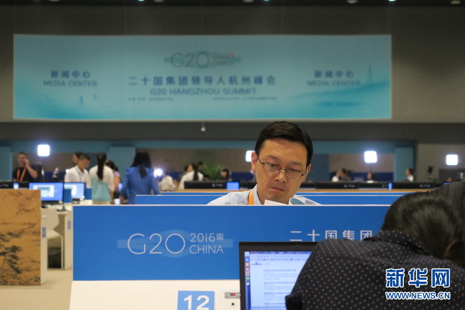 二十國集團(tuán)領(lǐng)導(dǎo)人第十一次峰會9月4日至5日在浙江杭州舉行。峰會新聞中心一派繁忙景象,境內(nèi)外各路媒體記者使出“洪荒之力”,實(shí)時報(bào)道峰會動態(tài)。新華網(wǎng)記者 陳競超 攝