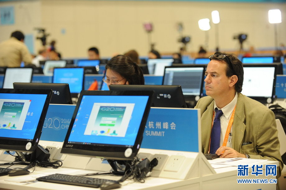 二十國集團領導人第十一次峰會9月4日至5日在浙江杭州舉行。峰會新聞中心一派繁忙景象,境內外各路媒體記者使出“洪荒之力”,實時報道峰會動態。新華網記者 陳競超 攝