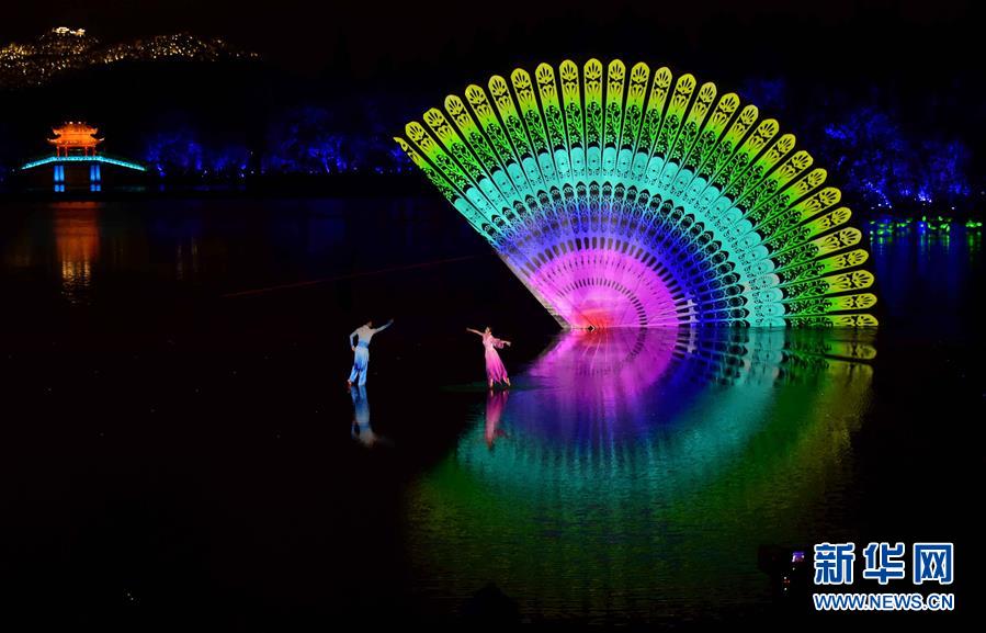 ??? 9月4日,演員在表演《美麗的愛情傳說》。當日,出席二十國集團領導人杭州峰會的G20成員和嘉賓國領導人及有關國際組織負責人在杭州西湖景區觀看《最憶是杭州》實景演出交響音樂會。新華社記者 張鐸 攝