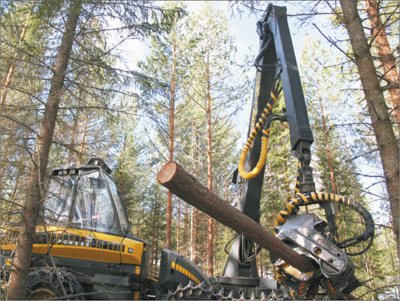 從芬蘭首都赫爾辛基驅(qū)車往北一個(gè)多小時(shí),我們的四輪驅(qū)動(dòng)汽車駛上一條小路。路上積雪越來(lái)越多,兩旁的森林也越來(lái)越密。循著轟鳴聲,我們看到一臺(tái)伐木機(jī)正在作業(yè):一只碩大的機(jī)械手攥住云杉的底部,量直徑、切樹(shù)樁、去雜枝、測(cè)長(zhǎng)度、斷木頭,幾秒鐘的工夫,一氣呵成。