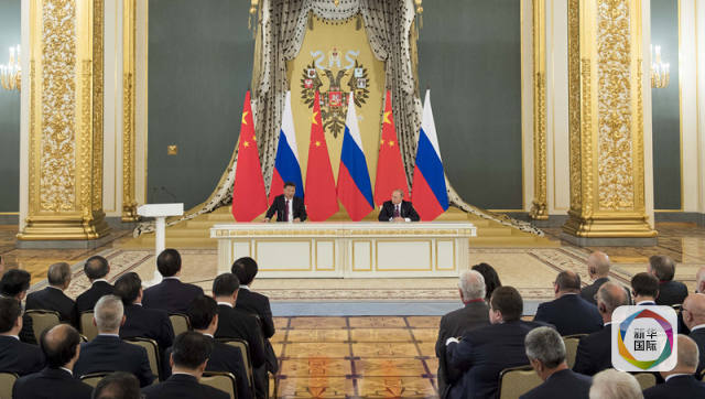 7月4日,國家主席習(xí)近平在莫斯科克里姆林宮同俄羅斯總統(tǒng)普京舉行會(huì)談。會(huì)談后,兩國元首簽署了《中華人民共和國和俄羅斯聯(lián)邦關(guān)于進(jìn)一步深化全面戰(zhàn)略協(xié)作伙伴關(guān)系的聯(lián)合聲明》《中華人民共和國和俄羅斯聯(lián)邦關(guān)于當(dāng)前世界形勢和重大國際問題的聯(lián)合聲明》,批準(zhǔn)了《〈中華人民共和國和俄羅斯聯(lián)邦睦鄰友好合作條約〉實(shí)施綱要(2017年至2020年)》并見證了《中華人民共和國外交部和俄羅斯聯(lián)邦外交部關(guān)于朝鮮半島問題的聯(lián)合聲明》以及經(jīng)貿(mào)、農(nóng)業(yè)、能源、基礎(chǔ)設(shè)施建設(shè)、金融、文化、創(chuàng)新、媒體、信息網(wǎng)絡(luò)、檢驗(yàn)檢疫等領(lǐng)域多項(xiàng)雙邊合作文件的交換。(新華社記者饒愛民攝)