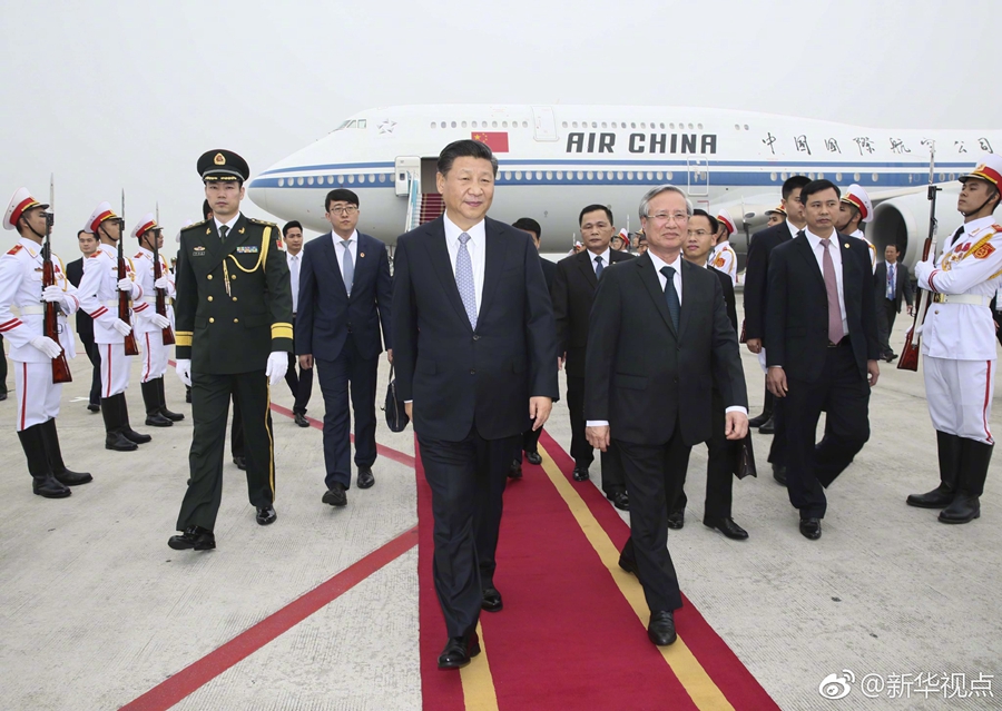 新華網北京11月12日電 中共中央總書記、國家主席習近平12日抵達河內,開始對越南社會主義共和國進行國事訪問。(攝影:新華社記者蘭紅光 ?據新華社“新華視點”微博報道)