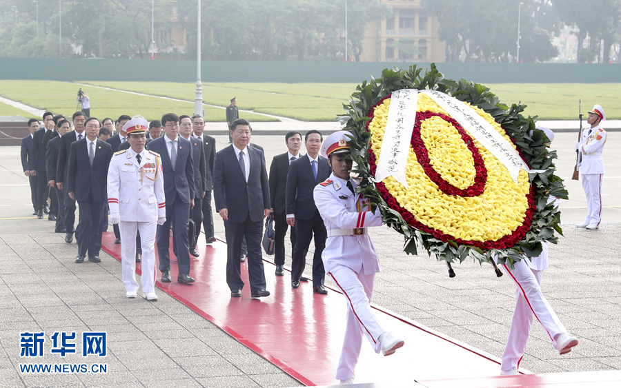 同日,習近平瞻仰胡志明主席陵并敬獻花圈。