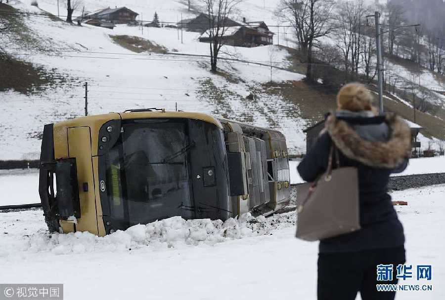 1月3日,瑞士倫克,風(fēng)暴“埃莉諾”來(lái)襲,一列火車(chē)被大風(fēng)吹得脫軌了。風(fēng)暴“埃莉諾”襲擊該國(guó),數(shù)千戶家庭斷電。瑞士氣象局對(duì)該國(guó)大部分地區(qū)發(fā)出了大風(fēng)警報(bào),許多道路被關(guān)閉,一些航班被取消,部分地區(qū)的客輪交通被迫中斷。瑞士警方稱(chēng),有數(shù)人被困在圣加侖州的一處滑雪纜車(chē)上。而在倫克地區(qū),大風(fēng)把一列火車(chē)吹得脫軌了。(圖片來(lái)源:視覺(jué)中國(guó))
