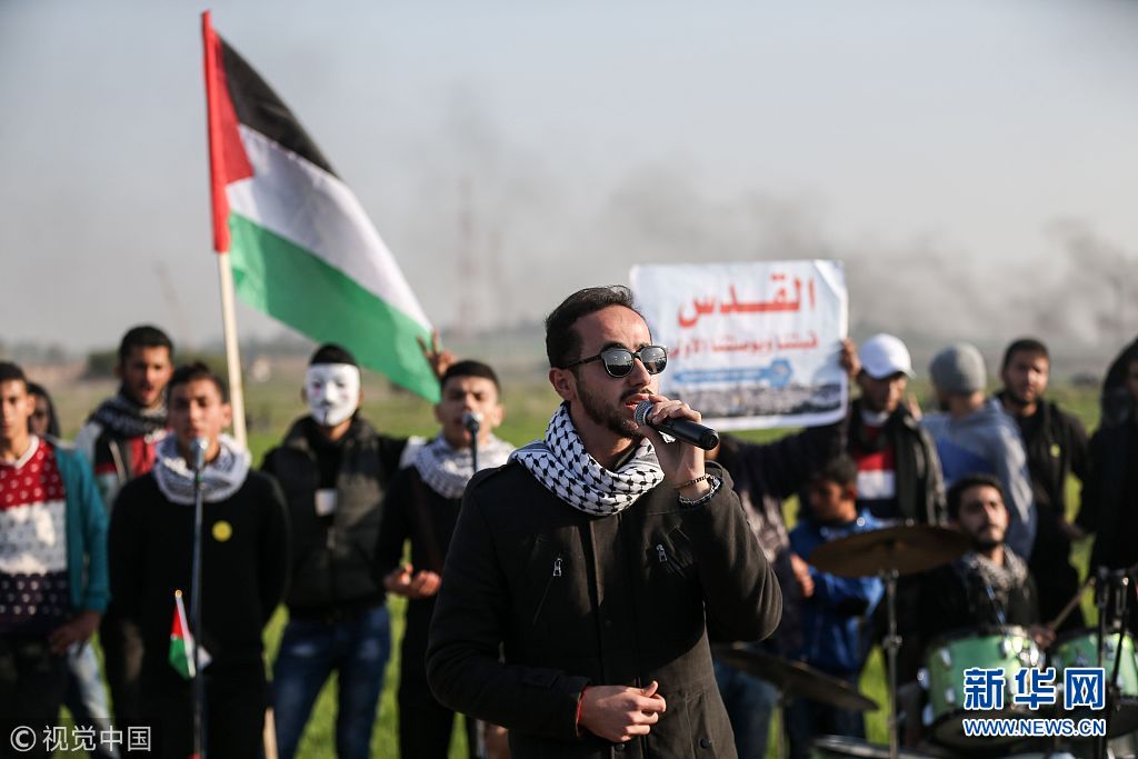巴勒斯坦示威者與以士兵發(fā)生沖突 巴樂隊沖突中淡定開唱