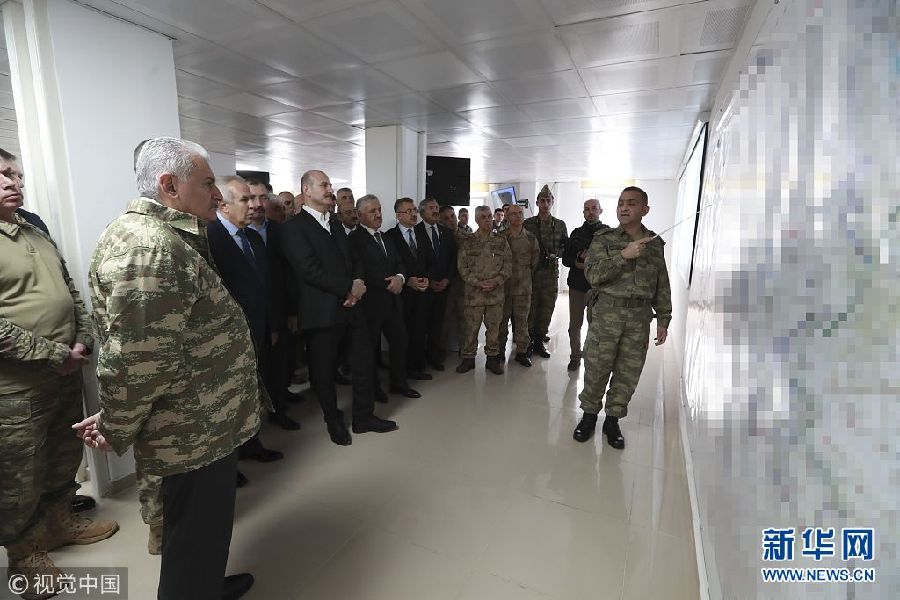當(dāng)?shù)貢r(shí)間2月4日,土耳其哈塔伊,土耳其總理耶爾德勒姆趕往前線(xiàn)指揮所視察“橄欖枝”軍事行動(dòng)進(jìn)程。(圖片來(lái)源:視覺(jué)中國(guó))