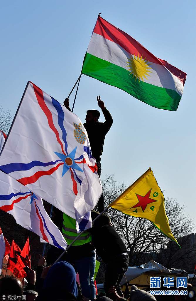當(dāng)?shù)貢r(shí)間2018年3月3日,德國(guó)柏林,當(dāng)?shù)孛癖娕e行游行,抗議土耳其對(duì)敘利亞阿夫林地區(qū)的庫爾德人采取軍事行動(dòng)。(圖片來源:視覺中國(guó))