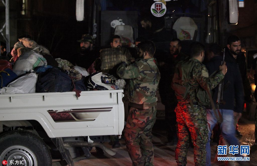 當地時間2018年3月9日,敘利亞,首批敘利亞反政府武裝人員從東古塔地區撤離。(圖片來源:東方IC)