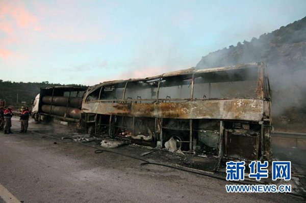 電視臺現場畫面顯示,大巴車嚴重損毀,只剩焦黑的車架。一位幸存乘客說,事發時車上乘客大多在睡夢中。有乘客打碎車窗逃生,未能逃出的乘客則大多遭遇不幸。