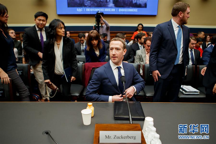 4月11日,在美國華盛頓,美社交媒體平臺臉書公司首席執行官馬克·扎克伯格(中)出席眾議院聽證會。新華社發(沈霆攝)