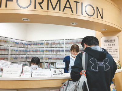 日本東京某私立醫院內,工作人員正在給病人登記。記者 劉軍國 攝