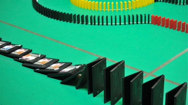 此次的多米諾挑戰(zhàn)除了520臺筆記本外,還準(zhǔn)備了45000枚骨牌。活動主題以及工程師們標(biāo)志性的代碼都成為了多米諾骨牌整體設(shè)計(jì)的一部分。最終,所有多米諾骨牌和筆記本電腦全部被成功推倒。