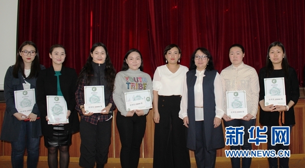 5月11日,蒙古國第六屆大中學(xué)生漢字硬筆書法比賽頒獎(jiǎng)儀式現(xiàn)場。新華網(wǎng)發(fā) 意特格樂攝