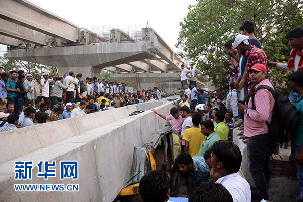 5月15日,在印度北方邦瓦拉納西地區,人們聚集在立交橋垮塌現場。新華社發