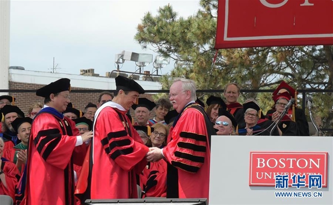 新華社美國波士頓5月20日電(記者徐劍梅)在美國波士頓大學20日舉行的2018屆畢業(yè)典禮上,中國導演張藝謀被授予波士頓大學人文藝術榮譽博士學位。