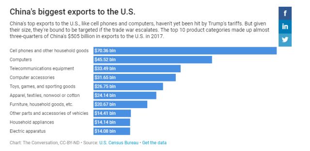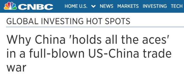 因此,CNBC這篇文章的作者也得出了與“布魯金斯學(xué)會(huì)”一樣的結(jié)論,即特朗普現(xiàn)在對中國的打擊只會(huì)傷及自身和盟友。這位作者甚至也列舉了CBS新聞網(wǎng)今天提到的那個(gè)iPhone手機(jī)的例子,并認(rèn)為一旦中美貿(mào)易戰(zhàn)“全面爆發(fā)”,中國手上可打的“王牌”要比美國多。