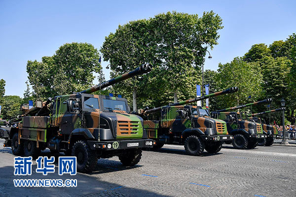 7月14日,在法國(guó)巴黎舉行的國(guó)慶閱兵儀式上,受閱部隊(duì)駛過(guò)香榭麗舍大街。新華社記者 陳益宸 攝