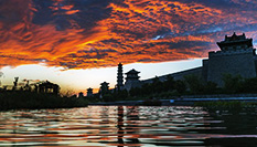 秋日晚霞映古城