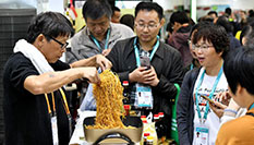 找到美國(guó)加利福尼亞州貿(mào)易商格諾·皮尼時(shí),他所在的展臺(tái)已經(jīng)被圍得“里三層,外三層”。“沒(méi)想到這么多參觀者,明年我們要換個(gè)更大的展臺(tái)!”他笑著對(duì)記者說(shuō)。