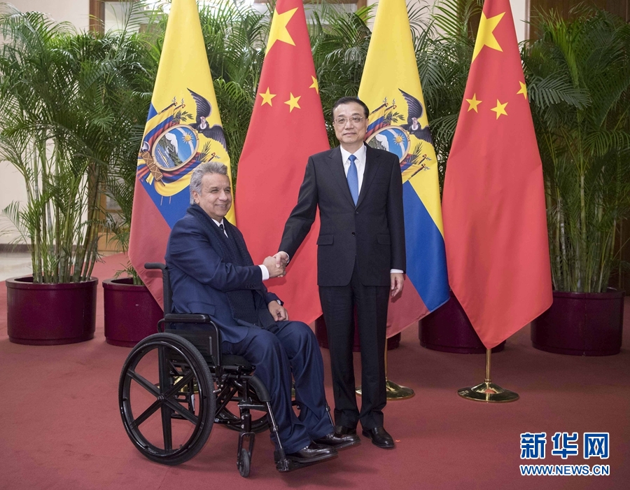 12月13日,國(guó)務(wù)院總理李克強(qiáng)在北京人民大會(huì)堂會(huì)見(jiàn)來(lái)華進(jìn)行國(guó)事訪問(wèn)的厄瓜多爾總統(tǒng)莫雷諾。 新華社記者 李濤 攝