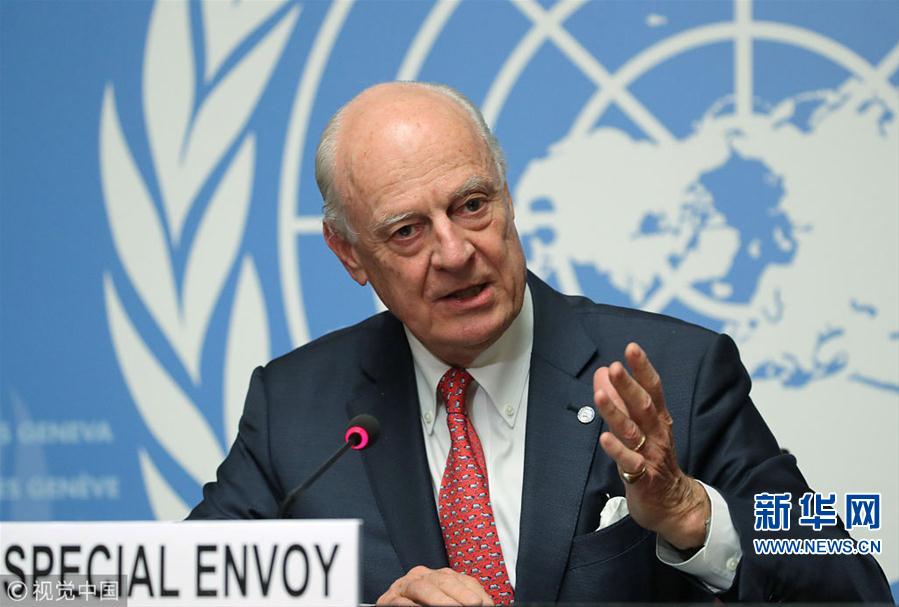 當地時間2018年12月18日,瑞士日內瓦,聯合國秘書長敘利亞問題特使德米斯圖拉參加討論組建敘利亞憲法委員會問題的會議并出席新聞發布會。(圖片來源:視覺中國)